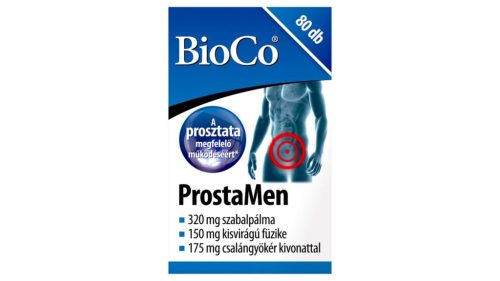 A BioCo ProstaMen tabletta : szabalpálma, kisvirágú füzike és csalángyökér kivonatot tartalmazó készítmény, valamint cinket és szelént tartalmazó étrend-kiegészítő tabletta.
