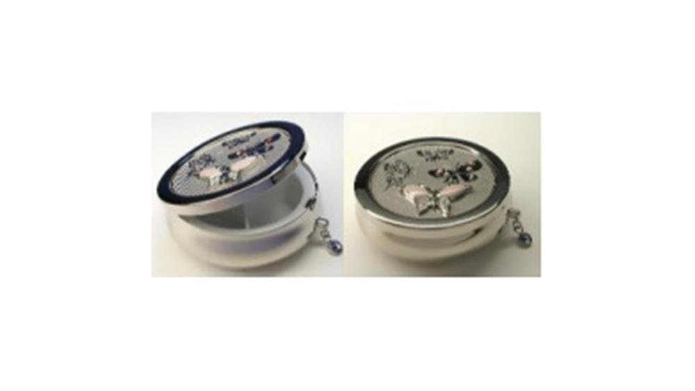 Gyógyszeradagoló szelence - kerek, lepkés mintás, 3 részes, Swarovski kristállyal