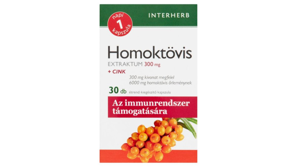 Interherb Napi1 Homoktövis Extraktum 300 mg + Cink étrend-kiegészítő kapszula 30 db 15 g