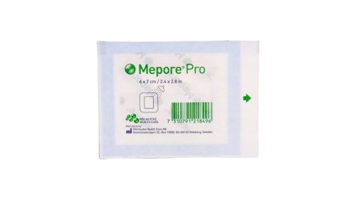 Jellemzők A légáteresztő Mepore® Pro olyan öntapadó kötszer, amely felszívja a vért és a váladékot. A védőfilm lehetővé teszi a zuhanyzást, emellett óvja a sebet a víztől és a szennyeződéstől. A Mepore Pro biztonságos és kíméletes rögzítést biztosító, bőrbarát sebtapasz. A puha és elasztikus védőfilmet úgy alakították ki, hogy az kényelmes legyen a beteg számára, és jól illeszkedjen a testkontúrokhoz. Megvédi a sebet a víztől és a külső szennyeződéstől Vírus- és baktériumgát* Puha, elasztikus védőfilm a beteg kényelme érdekében Magába szívja a vért és a váladékot *25 nm-nél nagyobb mikrobák esetén Mikor használjuk? A Mepore® Pro az enyhén–közepesen váladékozó sebekre – például műtéti sebekre, vágásokra és horzsolásokra – használható. Alkalmazás Bontsa ki a csomagot és vegye ki a kötszeret. Fogja meg a kép, egymást átfedő védőpapír, és tegye szabaddá a ragasztós flületet a kötszer első rögzítéséhez. Helyezze a kötszert a bőrre anélkül, hogy megnyújtaná és óvatosan távolítsa el a többi védőpapírt. A megfelelő tapadaás érdekében határozottt mozdulattal simítsa le a tapadó széleket. Felhelyezés közben ne nyújta meg a kötszert.