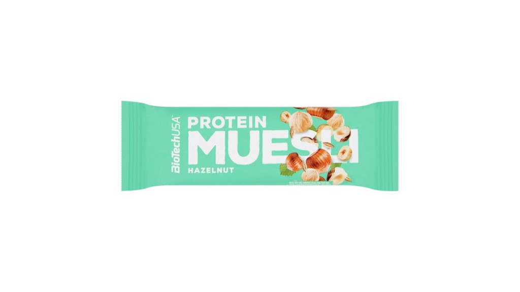 BioTechUSA Protein Muesli müzliszelet mogyoró & földimogyoró darabokkal vassal & édesítőszerrel 30 g
